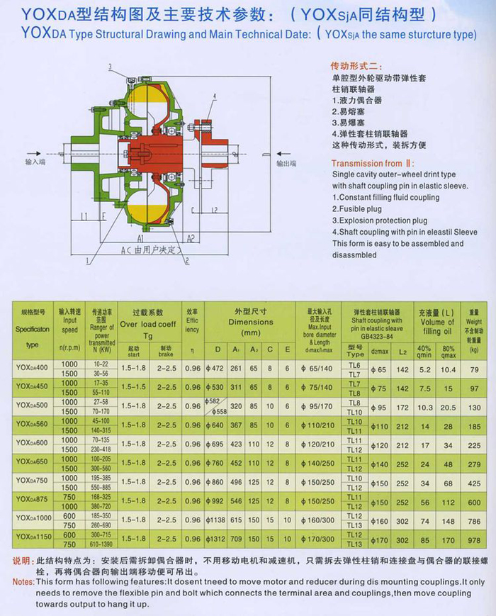 YOXDA型結(jié)構(gòu)圖及主要技術(shù)參數(shù):(YOXSjA同結(jié)構(gòu)型)系列